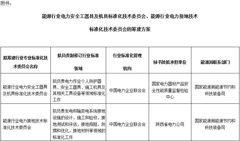 附件:能源行业电力安全工器具及机具标准化技术委员会、能源行业电力接地技术标准化技术委员会的筹建方案