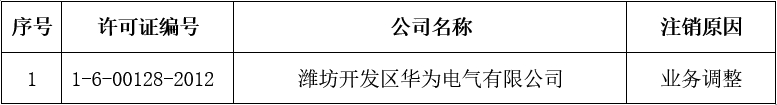 为加强行政许可后续管理,进一步规范承装(修、试)电力设施企业经营行为,根据《承装(修、试)电力设施许可证管理办法》、《承装(修、试)电力设施许可证监督管理实施办法》等有关规定要求,我办于2021年1月12日拟注销潍坊开发区华为电气有限公司《承装(修、试)电力设施许可证》进行公示。